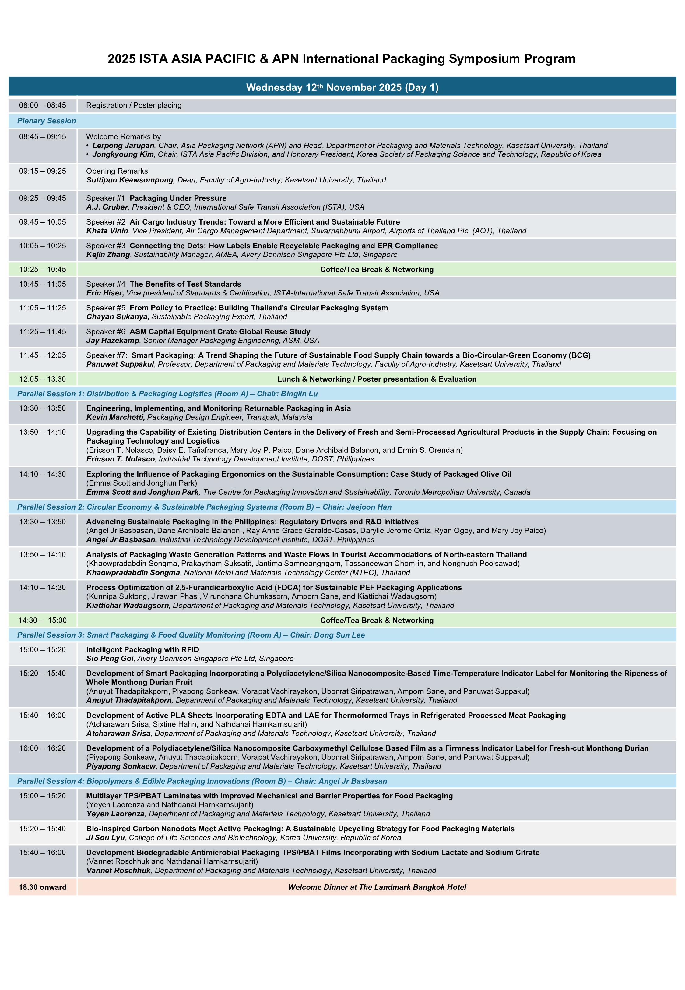 APN Chair & Head of Department of Packaging and Materials Technology, Faculty of Agro-Industry, Kasetsart University, Thailand